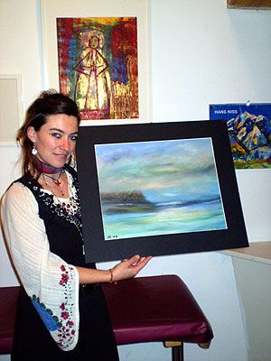 Der Applaus war groß. Denn die Freude über den Erwerb dieses meditativen Bildes sprag regelrecht auf das Publikum über. Ebenso wurde das Aquarell von Hans Ritzl mit seinen wunderschönen roten Mohnblumen von vier Interessierten Mitsteigerern in die Höhe getrieben. Unter den Hammer kamen über 50 Werke. Zur Freude des Integrationshauses konnten insgesamt 7.050,- Euro gesammelt werden, die nun für Menschen in besonderen Notsituationen sowie für Reparaturen an Dach und Heizung des Integrationshauses verwendet werden.